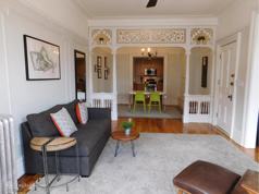 REDUCED FEE! Park Slope Gem! With four windows overlooking Prospect Park, directly across the street from the entrance to the Park, Celebrate Brooklyn, the NY Phil Concert, the playground and only 2 blocks to PS 107, this second floor, stunning, sunny, approximately 1200 square feet 4 bedroom + extra den room with 3 exposures in a pre-war limestone building on Prospect Park West is a very rare find. Features include modern kitchen, classically tiled bath, washer/dryer and plenty of closets. Rooms & Amenities Include: Sun-drenched, Spacious Living Room (Bay Window on Park) Den/Playroom (Extra Room with window on the Park), formal dining room (with seating for at least 8), modern kitchen with SS appliances, dishwasher, maple cabinets and quartz countertop, new washer/dryer in apartment. Rent includes: Large Storage Unit & Bike Storage in basement. Heat & hot water Included. No Smokers allowed, thank you. Pets Upon Owners Approval. Flexible move-in date and lease term.