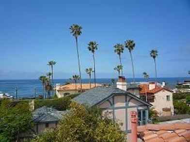 Ocean View Townhome in La Jolla - Panoramic Ocean View, steps to water/beach. This Tri-level townhome in Birdrock has real hardwood floors throughout, tiled kitchen and baths, stainless appliances include refrigerator, gas range/oven, dishwasher and built-in microwave, washer and dryer also in unit. Eat-at-Bar and granite countertops in kitchen. One bedroom and full bath with tiled shower enclosure on 2nd level with dining room/living room and kitchen and 2 master bedrooms located on 1st level. One master suite is quite large with spacious bath, granite vanity, tub and separate shower enclosure; the other is smaller and bath has tub/shower combo and granite vanity. All closets are walk-in style with closet systems built-in. Wired for alarm system. You'll especially enjoy the very spacious exclusive-use rooftop deck with panoramic view of the ocean, just 1/2 block away. Walk to ocean, shopping and several restaurants along La Jolla Blvd. Close to downtown La Jolla. Will allow 1 small pet under 25lbs. only.
