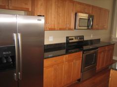 * Open Kitchen & Living Space. Stainless steel appliances, dishwasher, microwave, granite countertop, maple cabinets.