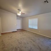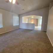 New carpet throughout, fresh paint. Great room is vaulted; large family room and kitchen tiled throughout. Kitchen features all appliances, pantry, island, and sitting area. Split master bedroom has a full bath, and large walk in closet. Three secondary bedrooms share a hall bath. Inside laundry. Covered patio and walled backyard. Two car garage. Call today to view. *Note: Refrigerator left for tenant use by will not be repaired nor replaced.