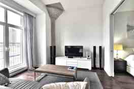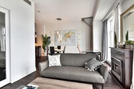 L'HÉRITAGE DU VIEUX-PORT - Luxury condo. One close bedroom offered fully-furnished. Very well maintained. Large windows facing East. GARAGE included. Proximity to the Old Port, easy access to downtown, CHUM and highways. Interior pool, gym, wine cellar, billiards table, and terrace with views on the water. Available for quick occupancy.