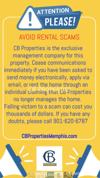 CB Properties does not advertise on or Facebook Marketplace. We will never ask you to wire money or request funds through a payment app on your mobile device. Instead, you will be asked to bring a property reservation fee to our office located at 1060 Brookfield Rd, Memphis, TN 38119. Please exercise caution and reach out to us directly if you have any concerns or questions.
