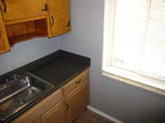 * Updated kitchen with maple cabinets, Formica counter top and white appliances
