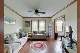 Sunny second-floor 2-bedroom, 1-bath apartment offering generous living space, including a formal dining room, large living room, and an enclosed front porch-perfect for a home office or relaxing retreat, featuring windows along the entire wall. Beautiful hardwood floors add warmth and character throughout the unit. Replacement windows improve energy efficiency, complemented by convenient gas heating for comfortable winter living. Located in a quiet East Broadway neighborhood, this apartment is just a short walk to local favorites such as Malt, Fifth Element, Caleb & Broad, and more. On-street parking is readily available. Tenants have easy access to laundry facilities in a clean, well-lit basement. No smoking. No pets.