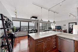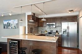 Sweet Recent Rehab! Just move in! 2 BR 2 Bath with split bedroom floorplan. Large living area has full wall of west facing windows - warm sunset views of city & Wrigley! Gorgeous wide-plank cherry thru-out. Fab new kitchen - Stone Bkfast Bar, SS Aps, Wine Frig! Good sized BR's. Huge Walk-in Closet for stg of clothes & more. Re-freshed baths. Heated garage spot included in price!