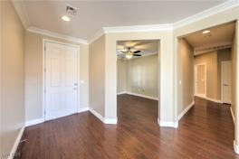 Highly upgraded Lincoln floorplan in the age restricted (55+) community of Sun City Anthem on premium elevated lot with Las Vegas Strip, City, & Mountain Views! Gourmet Island Kitchen features granite counters w/full backsplash, upgraded cabinets w/pull-out shelves, pantry, nook, breakfast bar, recessed lighting, & all appliances. Great room with ceiling fan, surround sound, and laminate wood flooring, and dining room with sliding glass door to rear yard. Primary suite features a ceiling fan, sitting area, door to rear patio, walk-in closet w/ organizers, dual sinks, raised vanity, garden tub, and shower. Secondary bedroom with ceiling fan and laminate wood flooring, plus a den/office with ceiling fan. Plantation shutters, laminate wood flooring, tile on diagonal, upgraded baseboards, crown molding, and custom 2-tone paint. Laundry Room w/cabinets & utility sink. Covered Patio, view deck, low maintenance landscaping, and so much more!