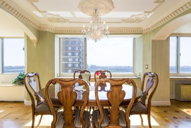 Spectacular condo overlooking GW Bridge and Hudson river. Two units combined for a total of 2,748 square feet. Large size 4 Bedrooms and 3 Full Bathrooms and 2 Half Baths. Luxury finishes featuring crown molding, large windows, and stunning inlaid floors. Kitchen has custom cabinets , granite counters, glass mosaic backsplash & S/S appliances. Master suite offers custom dressing room, walk-in closet, slider doors to a private balcony w/panoramic northern views; luxurious spa-like master bath w/jetted tub & stall shower. Completing the interior are 3 oversized bedrooms, 2 full half baths, powder room & 3 walk-in closets. Amenities includes 24 hour doorman, concierge, cliff top outdoor pool, health club, poolside picnic/BBQ area, on-site management office.
