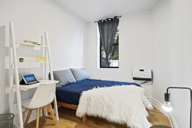 A recently renovated building with updated appliances, the Greenpoint House has hardwood floors and large windows throughout, along with spacious and beautifully decorated common rooms. Private bathroom options are available. Each apartment also has an in-unit washer and dryer. The common spaces include comfy seating, a pool table, plenty of space for co-working or game nights, a flat-screen TV, a fully outfitted fitness center, and a landscaped backyard with seating, a furnished rooftop, and a barbecue.