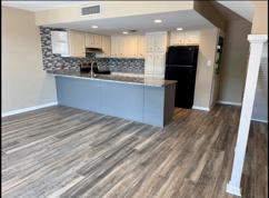 The open living and dining areas connect seamlessly to the kitchen, complete with updated faucet fixtures and plenty of counter space. Upstairs, the spa-like bath features Jack and Jill sinks, while the downstairs bath has been refreshed with new fixtures. A washer and dryer inside the unit add everyday convenience.