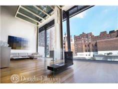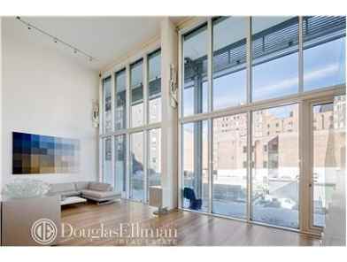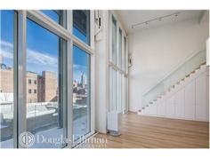 distinct features, the motorized perforated shutters that cover the two major facades of the building and the retractable walls of glass that create a continuity between interior and exterior space. Rarely available for immediate occupancy, this spectacular ultra modern duplex apartment, 4 bedroom, 3 bath, 2,695 s.f. interior space and 186 s.f private terrace at Metal Shutter Houses is an architecture of resourcefulness and personal freedom. Open the great room's 20' tall electronically controlled pivoting wall of glass to create your own private realm interposed between interior and exterior space. Apartment features include: Private floor entry, double height great room, Shigeru Ban designed floor-to-ceiling white lacquer cabinetry, flexible use study/ 4th bedroom with sliding glass walls that when opened provides an uninterrupted area to the rear balcony creating a home completely open to its surrounds, study overlooking a double height living room with Ban designed white Corian desk, Shigeru Ban custom-designed kitchen with a cantilevered island with white Corian countertop and fully Integrated high-performance professional appliances, master bath featuring Bianco Dolomiti marble slab floor with white mosaic glass tile walls and Shigeru Ban custom designed white Corian vanity, Solid ¾" rift and quarter sawn 4½" white oak flooring throughout with radiant heat & Bosch washer and dryer. North and South exposures offer sweeping Hudson River & City Skyline/Empire State Building views. Other services include a 24 hour doorman/ concierge and large individual storage facilities.