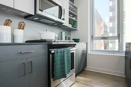 Perched on the river, this unique and modern high rise is what urban development is about. Not only do you get amazing cityscape views, you’ve got great river views as well. Kick back at the outdoor pool and hot tub with private cabanas and fire pits. There’s even an outdoor screening room, grilling stations with dining lounges, bocce ball court and game room for all your entertaining needs. Staying fit is a cinch with an expansive fitness center, Peloton Bikes and yoga studio. Each unit is equipped with in-unit W/D, sleek hardwood flooring throughout, upgraded white kitchen finishes and floor-to-ceiling windows.
