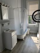 Short term, beautifully “FURNISHED” apartment is in the beautiful historic 100+ year old building with high ceilings tall windows lion claw tub, is located directly across from beautiful Point Pleasant River trails and parks. Walking distance to the coffee shop and local restaurant. This apartment is clean, quiet with peaceful neighbors. The photos are not complete with furnishings