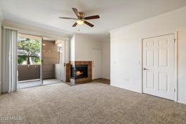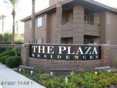 PRIME LOCATION at PLAZA RESIDENCE. First Floor condo with parking directly in front. 1 BR 1 BA. Living Room includes a tiled fireplace. Open floor plan with New Carpet. Kitchen: Black Quartz Countertops, Light Wood Cabinets, Stainless Steel Black and Appliances. Primary Bedroom has a large walk-in closet. The Bathroom has white countertops, white cabinets, and an oversized tub. Includes a Washer/Dryer. Relaxing Patios off of the Primary Bedroom and Living Room. Non-Smoking.