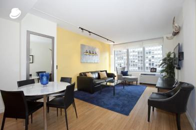 Furnished large one bedroom available starting September 1st, 2014. This 5th floor unit features 4 inch wide bamboo floors throughout. Open kitchen with a large island, made with crystal white polished countertops and custom bamboo cabinets. State of the art appliances include Bosch dishwasher, oven and cook top, Leibherr Refrigerator. Bathroom has Bianco Dolomiti white marble walls, quartzite floors and saddle glass mosaic wall tiles in the bath/shower. Custom designed bamboo vanity. The apartment also has a Bosch washer and dryer. The large bedroom has a walk-in-closet a queen size bed, side tables and a dresser. The living room has a large flat screen TV which is hooked up to a Samsung stereo system with Blueray. There is a large couch, glass coffee table, entertainment center and a dining table. All furniture is from Room & Board. Ready to move in condition. There is also an entry closet. The apartment is south facing with good light and city views.303 E. 33rd St. building provides the ultimate luxury modern lifestyle for homeowners today in Murray Hill. Expect superior amenities featuring aesthetically pleasing indoor and outdoor views, a tranquil modern space featuring the latest green design and technology from LEED, ensuring that this building is the premier choice for homeowners today.For a private viewing, contact Mukul Lalchandani with The Modern Agent at 646.283.4525. 91771
