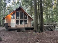 Chalet style 2 bedroom 1 bath home in Lake Limerick. Vaulted ceilings and loft bedroom, washer and dryer included, large deck, and a wood stove. From the home you do have a partial view of the water and a little river running close by.
