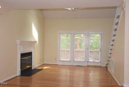 Move in now and live only 100 steps from Lake Johnson in this large end unit townhome with new carpet and oversized private 2nd floor primary suite plus 2 additional bedrooms on the 1st floor. Hardwoods in the open living and dining rooms and vaulted ceiling with skylights brighten the space, including the roomy loft above. Fully equipped kitchen has large pantry and stainless steel appliances, including a new dishwasher and ceramic top stove. The 2nd floor primary suite offers a walk-in closet and huge bath with dual sink vanity, soaking tub, separate shower and skylights. Relax on your spacious private deck with a wooded view and a storage closet. The walk-in storage space is located off of the loft adding convenience. Live just minutes from I-440, Downtown Raleigh and NCSU. No pets and no smoking.