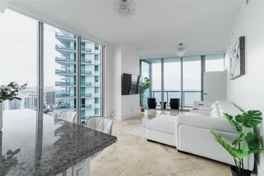 Experience the epitome of luxury living in this stunning, fully furnished apartment with breathtaking views, in the heart of downtown. The master bedroom is a sanctuary, featuring spectacular sunset through floor-to-ceiling windows. Step out onto one of the two balconies—one with panoramic city views and the other with mesmerizing water views. The apartment features floor-to-ceiling windows equipped with motorized blackout shades, Nest thermostat, and WiFi-controlled smart light switches. The amenities are second to none, including two expansive pools, a volleyball court, Jacuzzi/hot tub, BBQ grills, fully equipped gym, a mini-market, 24/7 concierge and security, storage room. 10 minutes from the beach, Brickell's vibrant restaurants and nightlife, Ice Crem, Art Museum, Children Museum