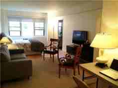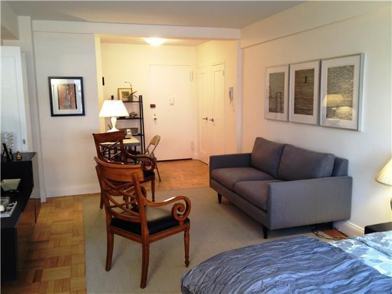 Charming updated studio apartment in a full service co-op. Offered unfurnished or furnished. The apartment was recently renovated, painted, and is in excellent condition. Brand new custom molding throughout, 48" flat screen LG television, high end custom doors and doorknobs.