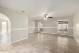 No HOA and large corner lot. Welcome to this move-in-ready home that has been tastefully remodeled! Updated interior boasts fresh paint, wood-look tile flooring, bountiful natural light, ceiling fans, and lovely archways. Large living room offers a cozy retreat, excellent for creating lasting memories with loved ones. Host dinner parties in the formal dining room, or cook with ease in the upscale kitchen, complete with stainless steel appliances, quartz counters, ample cabinetry, and direct access to the back patio. Head to the primary bedroom to find a walk-in closet, a French door leading to the patio, and a private bathroom with dual sinks. Spacious backyard provides a screened-in patio, pergola, and a sparkling pool perfect for the warm summer days. Don't let this gem slip by! Hurry!