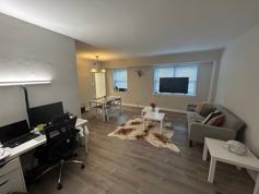 The kitchen is equipped with granite countertops and stainless-steel appliances. The unit has been recently renovated and freshly painted in neutral tones, with hardwood flooring throughout.