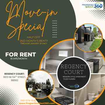 Welcome to your spacious 2 bed, 2 bath Vancouver, WA apartment home! This ranch-style upper level apartment boasts approximately 1033 sq. ft. of living space, featuring a generously-sized living room, tile counters, and modern appliances including a fridge, range, dishwasher, microwave, and washer & dryer set. Stay comfortable year-round with the included A/C, and enjoy the convenience of covered parking. This well-maintained apartment, built in 1996, offers a lease term of 1 year and includes a utility charge for water/sewer/garbage. No pets or smoking allowed. Don't miss out on this fantastic opportunity to call this lovely Vancouver apartment your new home! New Year Move-in Special: HALF off second months' rent when you apply and move-in by January 31! Rent: $1,445; Security Deposit: $1300; Cleaning Fee (Non-refundable): $250; Processing Fee (Non-refundable): $200; Monthly Utility charge for Water/Sewer/Garbage: $110; Tenant Responsible for Electricity. Term: One year lease. ----- Square footage displayed is approximate and may vary slightly. Rental rates, availability, lease terms, deposits, features and specials are subject to change without notice. Photos may be of a similar unit. View our website for current availability: www PropertiesWest360 com
