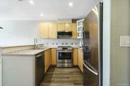 Experience the perfect blend of nature, comfort and convenience in this pet-friendly 1-bedroom + large den unit comes unfurnished or furnished at 3122 Saint Johns Street, just a short walk from West Coast Express, Moody Center, and Inlet Centre stations. The thoughtfully designed layout begins with a gourmet kitchen featuring stainless steel appliances, including a dishwasher and garburator, complemented by ample counter space and a breakfast bar.