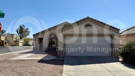 Available Now! 1,106 Sq Ft! 2 bedroom, 2 bath home in El Mirage! Desirable single story floor plan with soaring vaulted ceilings, & welcoming great room entry. Charming kitchen with included appliances, & ample cabinetry/countertop space! Off kitchen dining space. Spacious great room living! Neutral interior with wood-like flooring throughout. This home offers 2 nicely sized bedrooms! Primary suite with full bath + walk-in closet. Blinds + ceiling fans! Included washer/dryer. Enjoy an oversized backyard with covered patio, & extended pavers! 2 car garage. Located on a desirable corner lot with N/s exposure! Great El Mirage location with easy Us-60 + Az-101 access.