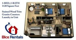 3-Bedroom 2-Bath Apartment available immediately for rent.