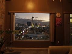 This fantastic condo offers views of the fabulous Las Vegas Strip from the living room, kitchen, bedroom and its own deck perched 12 floors up. See the 4th of July and New Year fireworks from your own living room! Fully furnished. Jet tub in master bath. Rooftop pool, spa and exercise room. Parking in on-site garage. Walk to the new Downtown Vegas with restaurants, Container Park, live music events. Available July 1, 2015. 7-12 month lease available. Contact Evans Small 702-510-4831 to apply.