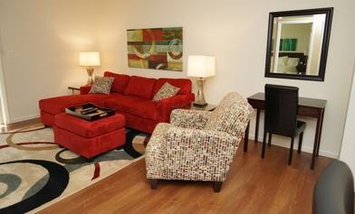 The fully furnished unit contains lush, contemporary décor, large, hi-tech, hi-definition, smart TVs, dinnerware, flatware, drinkware, cookware, cooking utensils and bakeware. Amenities incorporated in the contemporary kitchen include a gas range, frost free refrigerator and freezer with ice maker, microwave/vent hood, dishwasher and garbage disposal. Depending on the weather, you'll be glad to have gas heat and central air in your unit. Don't forget to relax on your balcony.
