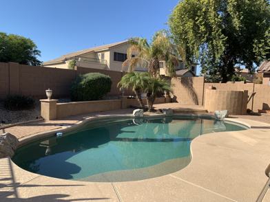 16426 N 152nd Lane, Surprise, AZ is a 4 bedroom, 2 bathrooms apartment for rent. It is located in the Orchards neighborhood of Surprise. It has apartment amenities including central heat, walk-in closets, dishwasher, air conditioning, ceiling fan, in-unit laundry, carpet, fireplace, high ceilings, and outdoor space. Dogs are allowed, making it a pet-friendly apartment.