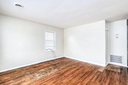 Step into comfort and convenience with this beautifully renovated 2-bedroom, 1-bath ranch home, designed to offer modern living in an efficient and affordable space. The kitchen is both stylish and functional, featuring brand-new countertops, a modern microwave, and sleek light-grey tile flooring. A contemporary sideboard dining area provides the perfect spot for casual meals or morning coffee. In the bathroom, elegant tile floors and a matching tub surround combine durability with style. The oak-stained vanity and mirrored medicine cabinet offer ample storage and a warm, classic touch. The living room welcomes you with refreshed hardwood floors that flow seamlessly through the hallway, creating a cohesive and inviting space. Both bedrooms feature new vinyl plank flooring, LED lighting, and crisp white closet doors that make the rooms feel bright and welcoming.