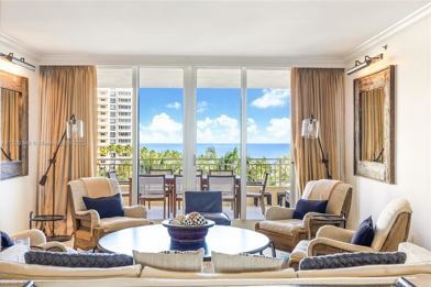 Amazing direct ocean and bay views from this completely updated flow through unit with 2 expansive balconies. 3 Bed converted into 2 Bed for completely open living space with 3 entertaining areas and dining room. Natural lighting throughout makes for a bright and light apartment. FULLY FURNISHED with exquisite taste. Both bedrooms w/ large bathrooms and walk in closets as well as laundry room area w/ storage. Private elevator. 1 assigned parking space. Ocean club offers resort style five star amenities in a private and family friendly community with several pools, direct beach access and full service. Beach club restaurant, gym, spa, tennis courts, clubhouse, playground, and 24 hour concierge. Easy to Show. Available now! Short term rental.