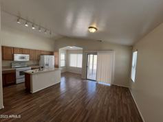 Spaces 4 bedroom 2 bath Rental Home in Cottonflower subdivision This is a split floor plan home with vaulted ceilings, the kitchen is complete with eat in breakfast nook, Island, lots of cabinetry with pull out shelves in the lower cabinets. this rental has Wood looking vinyl plank flooring and carpet in the bedrooms. Low-maintenance front and backyard. Community Playground nearby! Located within close proximity and easy access to I-10 and Loop 303 freeways, and shopping centers. Refrigerator is as-is and owner will not repair.
