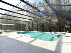 Move-in Ready with no rear neighbors, this home offers fresh interior paint, new carpet throughout, a new stainless steel refrigerator, and thoughtful architectural features including plant shelves, high ceilings, and a spacious 2-car garage. This 4-bedroom, 3-bath pool and spa home also includes lawn care and pool maintenance, providing convenience and peace of mind. The open floor plan features separate formal living and dining rooms, ideal for both entertaining and everyday living. The master bedroom offers direct pool access and an ensuite with a walk-in shower, soaking tub, separate water closet, and a walk-in closet. An additional bedroom also includes its own ensuite for added privacy. Enjoy Florida living at its best in the expansive screened-in lanai, offering plenty of space for outdoor dining and relaxation by the pool and spa. Located in the desirable Sandy Ridge Community, this home is just minutes from Champions Gate’s vibrant social hub, Disney World, Posner Park Mall, supermarkets, I-4, and US-27. Please note: the pool heater does not convey. This home is a must-see—schedule your viewing today. Sorry, no pets.