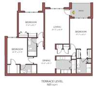 This three bedroom apartment features 10 foot ceilings and large windows for an abundance of light. The large master suite features a his and her closet and the master bath features a large vanity and a large soaking tub.