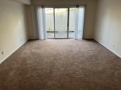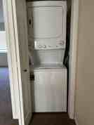 2 bed 1 bath apartment, large living room. Kitchen and living room on the first floor. Both bedrooms and bath are on the second floor. Sliding glass doors to outdoor patio