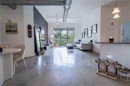 With 11 foot exposed ceilings, this loft style residence provides an open and airy feel reminiscent of a private home The primary suite features a generous walk-in closet.