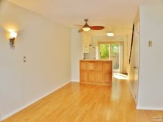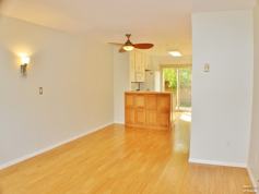 - Living room features: beautiful bamboo flooring, custom lighting treatments, ceiling fan, built-in storage at breakfast bar, & small hall closet