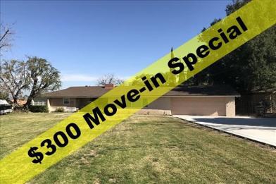 Large front yard and extra long driveway greet you. PLEASE NOTE - this property is managed by Management One only. If you are asked to send money to anyone other than Management One, it is a scam. Hardwood floors in bedrooms, galley style kitchen with tile counters. Large master bedroom and upgraded master bath. Relax in front of the beautiful brick fireplace in the living room. Enjoy the gorgeous Southern California weather on the back patio. Before sending money or your personal information to anyone, please contact Management One first to confirm at 951-735-2000.