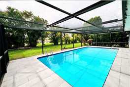 Modern Luxury Meets Florida Living! Step into this beautifully remodeled 3-bedroom, 2-bath home with a den/office in the sought-after Country Club neighborhood of Cape Coral. At 1,548 sq. ft., every inch of this residence has been thoughtfully designed with sophisticated upgrades and a focus on the ultimate Southwest Florida lifestyle. The interior features a spacious open-concept floorplan that is perfect for entertaining family and friends. Stunning large gray marble-look tile floors flow throughout, creating a sleek and modern backdrop. The kitchen is a chef’s dream, highlighted by a large quartz island with a matching quartz backsplash, premium shaker cabinets with bold black hardware, stainless steel appliances including a washer and dryer, and a generous walk-in pantry. Premium LED lighting and ceiling fans enhance comfort and style in every room. Both bathrooms are spa-inspired, offering modern shaker vanities with oversized mirrors, quartz counters and glass-enclosed walk-in showers with rainfall shower heads and matte black hardware, creating the ultimate retreat for relaxation. Step outside to your private backyard oasis where a large, newly refinished pool is surrounded by towering areca palms that provide a tranquil and secluded setting. The spacious lanai offers the perfect space for outdoor living, al fresco dining, or simply enjoying the Florida sunshine. Located in the desirable Country Club area, this home offers convenient access to Downtown Cape Coral, Publix, Target, Aldi, Wawa, TJ Maxx, Burlington, Lowe’s, and a wide selection of restaurants. With the Midpoint and Cape Coral bridges nearby, trips to Fort Myers, Fort Myers Beach, and Sanibel Island are quick and convenient. This home isn’t just a rental—it’s a lifestyle upgrade. From modern finishes to your own private pool paradise, every detail invites you to relax, entertain, and truly enjoy the best of Southwest Florida living. Listed by: EXP Realty LLC Listing posted by Linda Castanon (786) 933-9164. [SYNDID 4141642 11042025]