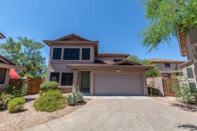 Location! Location! North Scottsdale Gated Community with Community Pool & Spa. Located Near Pinnacle Peak Rd and Scottsdale Rd! Enjoy Two Master Suites- one upstairs with it's own full bath & Family Room/Loft and the other Master down stairs with a full bath and Open Great room - Kitchen with Large Pantry, Built-In Microwave, Refrigerator, stove, dishwasher & garbage disposal. Inside Washer and Dryer. Great Backyard with Covered Patio, Turf Grass, Plants, Rocks and Trees. Near, Fine Restaurants and Lots of Shopping.
