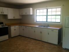 Single level, 3 bedroom, 2 bath, home featuring living room, eat-in-kitchen with range & fridge, den with decorative fireplace and carpet. Additional amenities include utility room with laundry hook-ups, electric central heat & air, partially privacy fenced patio & deck. Some hardwood flooring. Owner must approve all pets. R-2 Zone.