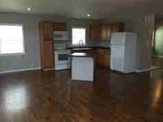 Inside, you’ll find a spacious great room with a kitchen island—perfect for cooking, dining, and gathering. The home features two generously sized bedrooms with ample closet space and a large, well-designed bathroom. The laundry area is thoughtfully located in its own closet, adjacent to the side entrance with ramp access for added convenience.