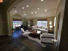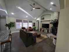 This well maintained and loved home in Random Oaks at the Shores Neighborhood is the kind of home you'll want to move in and stay awhile. Renovated kitchen with all new cabinets, stainless steel appliances, granite counters and a great big sink! No carpet! Stone fireplace with cedar mantel is a showstopper. Gorgeous stained concrete and slate tile floors in all main areas. Wood look tile in bedrooms. Open floorplan is perfect for entertaining. Two living rooms and formal dining room. Secondary bedrooms have their own wing. Huge corner lot. Fenced backyard with oversized covered patio. Spacious utility room. Simply gorgeous!! Animals permitted. Track lighting has been replaced with recessed lighting in both living rooms- some photos still show track lights.