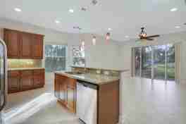 Beautifully Lake view one-story, 4-bedrooms, 2-bathrooms, two-car garage. Enjoy serene water views from the kitchen, family room, and primary suite. The open-concept kitchen overlooks the spacious family room and offers granite countertops, stainless steel appliances, a large pantry, and a sunny eat-in area. Tile flooring runs throughout the main living areas. This home also features a split-bedroom floor plan, volume ceilings, walk-in closets, and a private patio. Ideally located near the clubhouse amenities, including a resort-style pool, fitness center, playroom, tennis courts, basketball court, and playground. Located in Canyon Isles, a beautiful, pet-friendly community with a 24-hour manned guard gate.