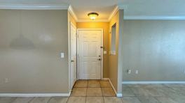 The kitchen boasts beautiful updated white cabinetry with a unique style wine rack! All kitchen appliances are includes, as well as a washer and dryer. Flooring throughout features tiles in the living areas and bathroom with luxurious vinyl plank in the bedroom, and the oversized walk in closet.