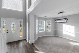 This home features carpet throughout with laminate flooring in the foyer and kitchen, a separate living room and dining room, and a huge sunken family room that opens to the eat-in kitchen with standard white cabinetry perfect for everyday living and entertaining.