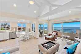 FURNISHED OCEANFRONT Laguna Village location! This triplex sits just above the sand with private stairs to the beach. This upper apartment is new, clean and simple and offers beautiful ceramic tile flooring that looks like hardwood throughout, newer beautiful kitchen including stainless refrigerator, dishwasher, electric stove and microwave. Inviting dining area just off kitchen with spacious wrap around ocean view deck off living room for relaxing and sunbathing. Back bedroom is nice and quiet and offers King bed, recessed lighting and ceiling fan. The bath features glass enclosed shower, dual sinks and separate toilet room. Oak street beach is one of the best beaches in town for surfing, paddle boarding and skim boarding. Beautiful sandy beach, very picturesque and tranquil yet teaming with surf activity and nature. One block off coast highway, this quiet location offers off street parking for one car, and shared free laundry. Convenient to world class galleries, shops, and dining nearby. Tenant to verify and measure square foot if factor of rental. Submit on short term. Call for seasonal rates