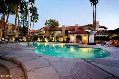 This charming 2nd floor unit is spacious with vaulted ceilings, neutral paint, 2 master bedrooms, laminate flooring & attractive tile. Open concept floor plan w/large kitchen... An abundance of oak cabinetry, lots of counter space, stainless steel appliances, includes fridge, built-in microwave & an eat-at bar. Inviting family room w/sleek fireplace & a formal dining area. Lovely master suite w/double sinks, garden tub & walk-in closet. Washer/dryer included, A beautifully manicured community with charming lagoons, water fountains, community pools & spas...true luxury lifestyle living! Spectacular location.. Minutes to the 101/Kierland/The TPC & more. Owner will allow 1 small dog. No cats please. Thank you.